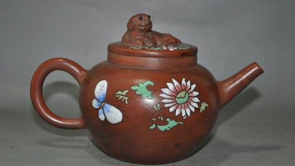 清代康熙朝首創(chuàng),乾隆時(shí)達(dá)到高峰。均由宜興入貢素胎紫砂器,再由清官內(nèi)務(wù)府造辦處工匠以琺瑯釉彩繪花卉紋并加款燒造。俱為宮殿用器,制作極為考究,豪華精巧,富麗堂皇,傳世品很少,極具收藏價(jià)值:據(jù)清內(nèi)務(wù)府造辦處檔案記,乾隆朝宜興畫(huà)琺瑯“俱康熙年款”。兩者的區(qū)別在于康熙琺瑯彩紫砂器在素胎上直接畫(huà)琺瑯花卉,而乾隆時(shí)先上紅或藍(lán)色琺瑯彩底釉,再以其他琺瑯彩繪花。