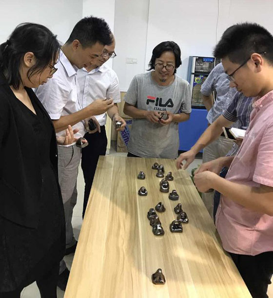 墨彩金毫印是馬銘先生于2017年6月28日,在福建建陽研創成功的一種新型篆刻藝術品。此印章為篆刻中的新貴,外觀精致、釉黑瑩潤、刀感爽快、亮可照人。此次活動與特伯教育集團合作,旨在弘揚民族文化,繼承和發展中國建窯文代與篆刻文化,以美于形的印章與精于神的藝術相結合,創造出令人驚嘆的藝術作品。這種從建盞到印章的“藝術轉換”,毫無疑問是高質量的藝術創造,是篆刻藝術創作的不竭源泉。