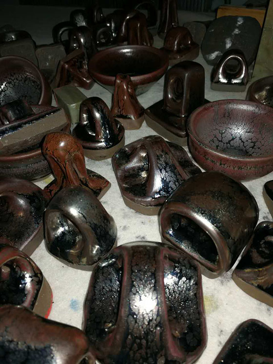 通過造型設計、篆刻、上釉、燒制等復雜過程、實現建陽陶土和篆刻藝朮的結合,傳統篆刻印章實現了材質與外形的升華,其形特、其光耀、其色豐、其彩炫。“墨彩金毫印”豐富了傳統篆刻藝術的文化內涵,將中國傳統的篆刻藝朮推上了一個新境界。