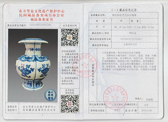 目前,東方華夏文化遺產保護中心民藏辦已依據中華人民共和國文化和旅游部令第56號"藝術品經營管理辦法"中的規定要求,制定了《民間藏品備案登記規范》、《民間藏品二維影像及微觀數據采集規范》和《藏品備案登記管理標準》,并采用統一標準為每件藏品建立永久、唯一的身份編碼,建立起藏品實物檔案與電子信息關聯一體的“藏品身份證”編碼和數據管理系統,以滿足信息查詢、展覽交流、存檔及數據管理等工作的需要。實現藏品資源標準化、信息體系化、流通規范化管理。為藏品的拍賣、質押、交易、保險、典當、保值、增值及資產化、金融化運作提供物權憑證。現階段,民藏“確權”工作已經步入正軌并在有序實施。下階段,該中心已與北京明正司法鑒定中心、天津明正司法鑒定中心、四川中信司法鑒定中心三大機構達成共識,合力推進藏品的“確真”體系建設,更好的為民藏界服務。