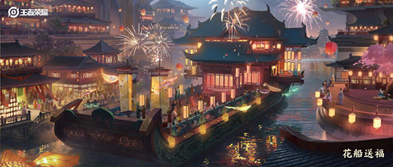 此次風(fēng)物志大賽,《王者榮耀》攜手LOFTER平臺開啟“白波青嶂”繪畫賽道,邀請玩家用畫筆繪出上元三夜發(fā)生在長安城中,英雄們之間的幻想故事。在B站賽道舉辦“飛袂驚鴻”舞蹈翻創(chuàng)及MMD大賽,邀請玩家以上元第二夜,英雄公孫離代表長樂坊參加“上元奪魁”所跳的“驚鴻舞”為原型,進(jìn)行翻跳或創(chuàng)新演繹。在半次元賽道舉辦的“云槎千繡”設(shè)計大賽,是以上元第三夜向路人拋灑福牌為引,邀請玩家以“祈福花船”的概念設(shè)計船體及裝飾物件,或為花船上巡游的英雄設(shè)計盛裝。