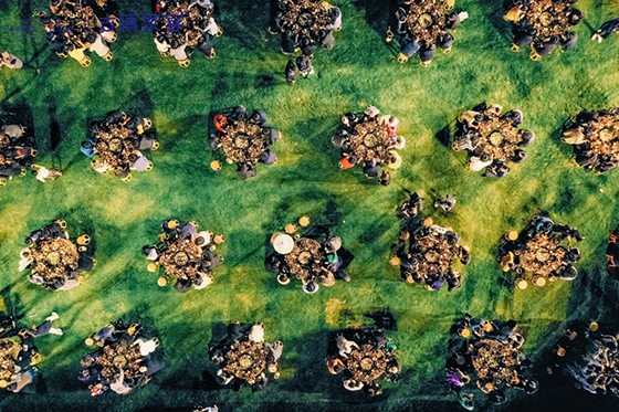 夕陽為草地鋪上紅霞,九個(gè)太陽輝耀滇海,古滇游客服務(wù)中心北廣場響起哈尼族的古歌,「古滇家宴4th-萬物共生的未來部落」晚宴終于開始。