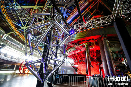 本次“科幻世”科技藝術概念展圍繞著“創新科幻、智享未來”的理念,充分利用首鋼工業遺產的空間特色,用科學與藝術結合的創意,打造了一個面向公眾未來體驗的科幻主題樂園,一場基于沉浸式媒體敘事的科幻系列展覽,一次探索技術美學邊界的科幻視聽盛宴。