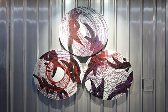 圖:李雨山與周俊,《O 80cm》,2021,亞麻布、油漆、油墨,80 cm(直徑),3件