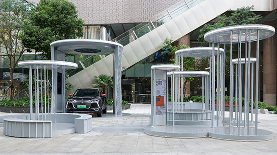 “約會天才媽媽——形之所向”非遺時尚實驗室藝術主題活動由“銀色試鏡”和“行紋”兩個單元組成,邀請了畢蓉蓉、分號C、何為、劉佳玉、李雨山與周俊、沈琪、徐子薇 、于惋寧、楊盈盈,九位(組)藝術家和設計師共同參與。其中,多位藝術家和設計師以非遺為靈感進行創作,從多個維度展現中國非遺文化之美,引領觀眾以全新視角走進非遺文化,進階思考和探索非遺文化的當代傳承與創新。活動空間由協作派對擔綱設計,并在室外空間以構筑物形態回應主題。活動現場還特別邀請到“天才媽媽”公益項目的非遺手藝人們以手工工作坊的形式,為觀眾展示具有代表性的中國非遺手工藝傳承與蝶變過程。