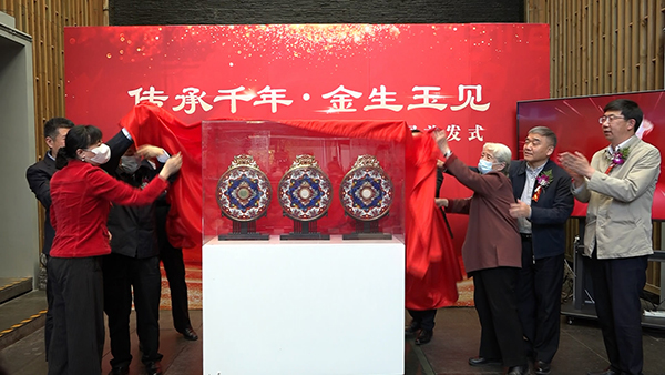 傳承千年,金生玉見(jiàn)。4月16日下午,由中國(guó)工藝美術(shù)大師、國(guó)家級(jí)非物質(zhì)文化遺產(chǎn)景泰藍(lán)制作技藝代表性傳承人鐘連盛和中國(guó)工藝美術(shù)大師、中國(guó)玉石雕刻大師張鐵成首度跨界創(chuàng)新,聯(lián)袂創(chuàng)作的首款玉璧景泰藍(lán)《千秋福運(yùn)》在京亮相首發(fā)。