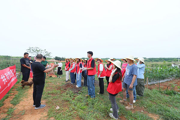 在群益村共享菜園,現場舉行勞動教育基地揭牌儀式。五里界街黨工委副書記徐家朋,團區委副書記蘇成鳳,湖北美術學院雕塑與公共藝術學院黨委書記羅遠紅、黨委副書記劉小榮,群益村黨支部書記謝受文,區政協駐村隊員齊煜共同出席揭牌儀式。