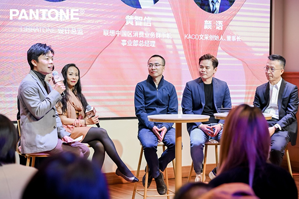(從左至右:MINDVIEW創(chuàng)意總監(jiān) 彭紀(jì)亨;Pantone總裁Elley Cheng;LIBRATONE設(shè)計(jì)總監(jiān) 王偉;聯(lián)想中國(guó)區(qū)消費(fèi)業(yè)務(wù)群手機(jī)事業(yè)部總經(jīng)理 黃智信;KACO文采創(chuàng)始人、董事長(zhǎng) 顏語)
