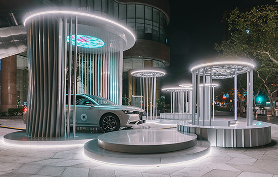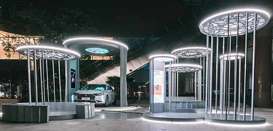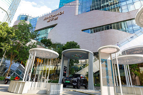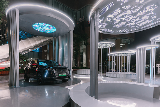 國慶長假期間,旗艦車型 DS 9和新上市DS 3 x Ines de la Fressange Paris新限量款也輪流在“行紋”室外單元部分“水光織鏡”藝術(shù)裝置作品內(nèi)展示,兩件藝術(shù)單品同時呈現(xiàn),美美與共,互相映襯,成為新天地一道亮麗風景線。DS汽車以其精湛工藝、臻選材質(zhì)、匠心設(shè)計,完美詮釋高定美學(xué),與非遺工坊的天才媽媽們一起,為觀眾展示中國非遺手工藝與巴黎高定藝術(shù)對現(xiàn)代高定美學(xué)的傳承與蝶變過程。