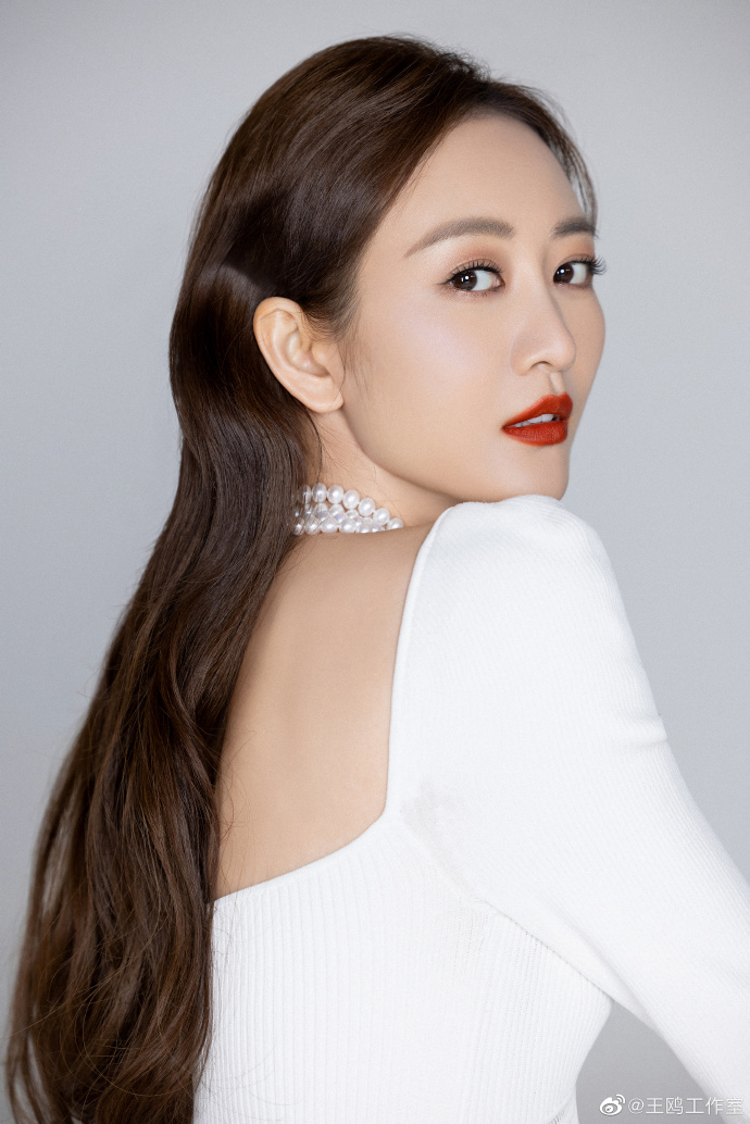王鷗涂紅唇穿白衣散發女人味 性感優雅