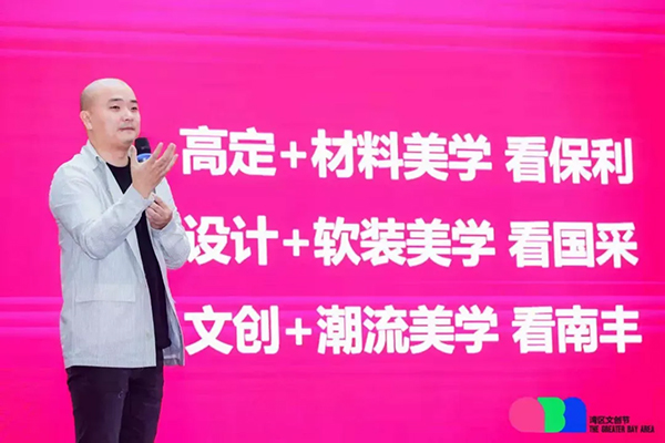 廣州設(shè)計(jì)周CEO賀文廣于首屆灣區(qū)文創(chuàng)節(jié)啟動(dòng)禮暨2021廣州設(shè)計(jì)周主題發(fā)布會(huì)上介紹三館內(nèi)容
