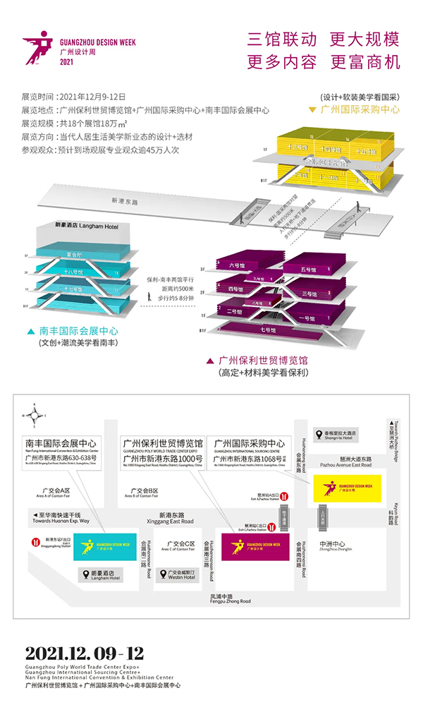 2021廣州設(shè)計(jì)周展覽規(guī)模達(dá)到18萬(wàn)㎡,較2020年的15萬(wàn)㎡又增大了3萬(wàn)㎡,在去年“廣州保利世貿(mào)博覽館+廣州國(guó)際采購(gòu)中心”的基礎(chǔ)上新增一座展館——“南豐國(guó)際會(huì)展中心”,展覽規(guī)模進(jìn)一步擴(kuò)大,更多品牌、更多活動(dòng)以及更多元的超級(jí)策展將會(huì)在三座展館中誕生,形成了“三館聯(lián)動(dòng)、更大規(guī)模、更多內(nèi)容、更富商機(jī)”的展會(huì)大格局,妥妥的亞洲設(shè)計(jì)產(chǎn)業(yè)第一規(guī)模大展。