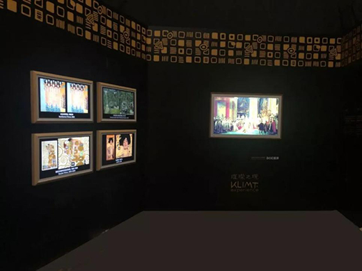2018年是奧地利國寶級藝術大師,維也納分離派代表人物克里姆特逝世100周年,為紀念這位世界最負盛名的藝術家特別策劃了這次“璀璨之境——克里姆特映像藝術大展”,7月12日,“璀璨之境——克里姆特映像藝術大展”在上海虹橋藝術中心舉行開展儀式,并于13日起,這一風靡歐洲的藝術展正式對外開放,在三個月的展期內,將運用不同多媒體設備展示300余幅克里姆特作品的高清影音資料,用光影傳遞來自百年前對愛與永恒的探尋與表達。本次大展采用了全球最先進的Matrixx-dimension技術和歐洲最先進的VR觀展系統,通過光線、聲音、視頻、互動影像等技術將藝術與科學完美融合。同時,此次展覽的影像設備支持由BOE畫屏提供,現場真實還原了克里姆特的藝術作品,用科技詮釋了藝術之美。