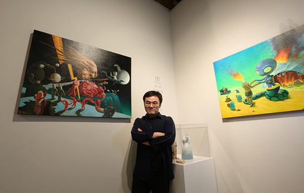 本次展覽也是洪伯明先生在2019年接任勁霸CEO之后開始不斷地在工作之余堅持創作的產物。他不斷地把生活中的東西記錄其中,延續到了今年。然后正好在2021年,開始做收藏時發現,經歷了整個疫情,很神奇的現象是,互聯網平臺上這一波的藝術家們可能由于疫情被關在家里沒法出去,所以大家花費更多的時間與自己對話,與自己內求。大家的風格的轉變,讓他感受是源于這么一個特殊時期的契機。大家的創作題材越來越多除了自己的心理需求之外,還同時關注到了社會的變化。所以在這樣一個節點上,就做了這樣一個成系列的收藏展覽。