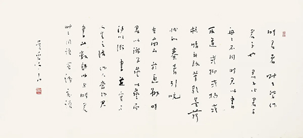 此次展覽共展出周時(shí)君近年來創(chuàng)作的真草隸篆行以及篆刻作品50余件。其書剛健含婀娜,其印端莊雜流麗,展示出較深的專業(yè)素養(yǎng)和技法功底,更體現(xiàn)出鮮明的個(gè)人風(fēng)貌和鮮活的時(shí)代氣息。南京藝術(shù)學(xué)院藝術(shù)教育高等研究院院長、博士生導(dǎo)師顧平教授贊其為“藝術(shù)的修行者、生活的逍遙派。時(shí)間對(duì)于他的意義仿佛只有傳統(tǒng)的續(xù)接與思考的延展。